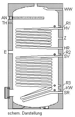 d.m.v. RVS (316L) spiraalbuis warmtewisselaar Door de 2 x 4 aansluitingen van 1.5" kan dit type boilervat heel goed gecombineerd worden in toepassingen met radiatoren, vloerverwarming, hout-CV kachels, pellet-kachels, onze walltherm houtvergassers en ook met onze PANASONIC warmtepompen Voorzien van afneembare isolatie, 20mm polyestervezel vlies en 100mm Neopor, afgewerkt met gladde degelijke (polypropyleen) mantel met ritssluiting Mogelijkheid tot monteren van electrisch verwarmings element. Voorzien van grote RVS doorstroom warmtewisselaar met 26 liter inhoud en 5.8 m2 oppervlakte. Kleur zilver, Duits fabrikaat. |